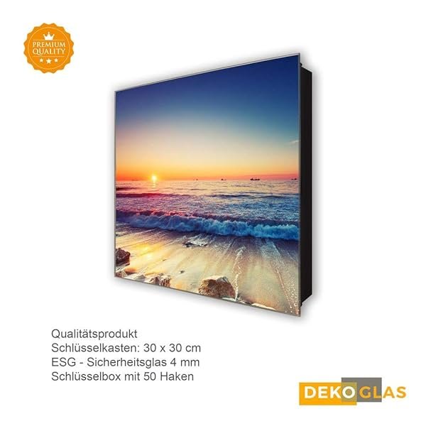 Mit diesem hochwertigen ca. 30 x 30 cm großen Schlüsselkasten dekorieren Sie gekonnt Ihren Eingangsbereich und sind nie wieder auf der Suche nach Ihren Schlüsseln. Der Schlüsselkasten von Glasbilder-Welt wird im Digitaldruck hergestellt, mit höchster Auflösung auf Folie gedruckt und anschließend auf Sicherheitsglas (ESG) geklebt. Durch das hoch entwickelte Produktionsverfahren, sowie die Verwendung neuester Nanotechnologie wird eine besondere 3D-Tiefenwirkung und Farbintensität erzielt.