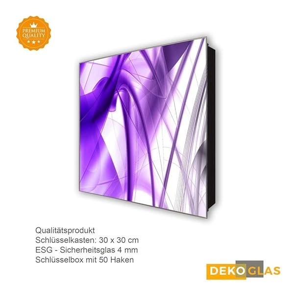 Schlüsselkasten 'Abstrakt lila' 30×30 Glas, inkl. Haken Schlüsselbrett Schlüssel-Box Design Aufbewahrung