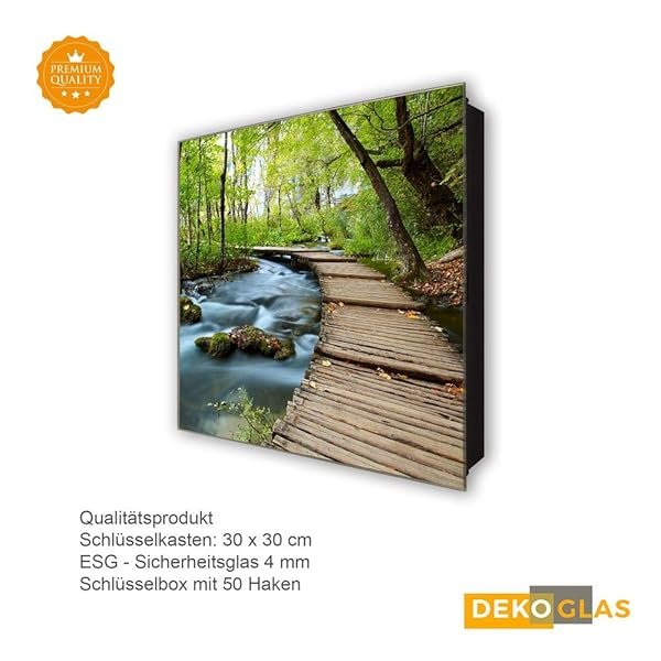 Mit diesem hochwertigen ca. 30 x 30 cm großen Schlüsselkasten dekorieren Sie gekonnt Ihren Eingangsbereich und sind nie wieder auf der Suche nach Ihren Schlüsseln. Der Schlüsselkasten von Glasbilder-Welt wird im Digitaldruck hergestellt, mit höchster Auflösung auf Folie gedruckt und anschließend auf Sicherheitsglas (ESG) geklebt. Durch das hoch entwickelte Produktionsverfahren, sowie die Verwendung neuester Nanotechnologie wird eine besondere 3D-Tiefenwirkung und Farbintensität erzielt.