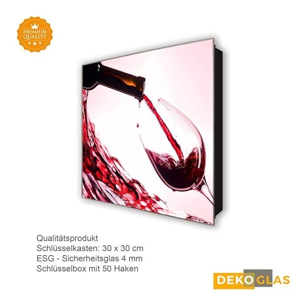 Schlüsselkasten 'Alter Wein' 30×30 Glas, inkl. Haken Schlüsselbrett Schlüssel-Box Design Aufbewahrung