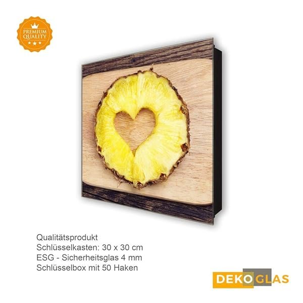 Schlüsselkasten 'Ananas Love ' 30×30 Glas, inkl. Haken Schlüsselbrett Schlüssel-Box Design Aufbewahrung