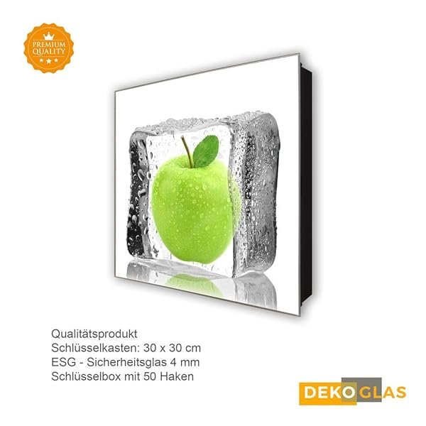 Das Motiv ‚Apfel im Eiswürfel‘ setzt ganz neue Akzente in Ihrer Wohlfühloase. Denn dieser Schlüsselkasten ist ein echter Dekorationskünstler. Dank der Eigenschaften und vielen Gestaltungsmöglichkeiten erfreuen sich unsere Produkte immer größerer Beliebtheit.
