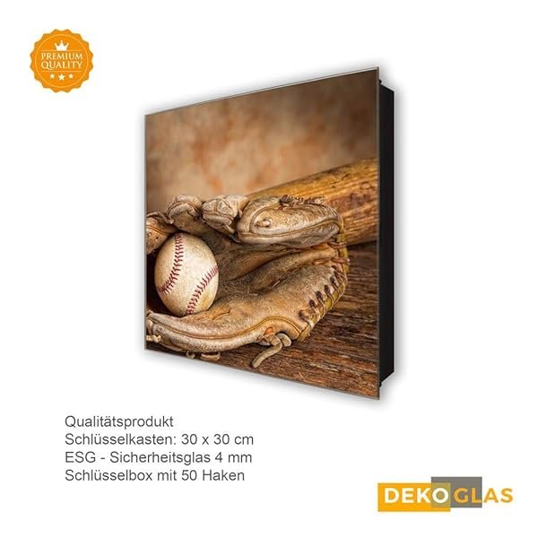 Schlüsselkasten 'Baseball ' 30×30 Glas, inkl. Haken Schlüsselbrett Schlüssel-Box Design Aufbewahrung