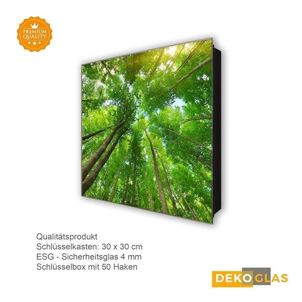 Mit diesem hochwertigen ca. 30 x 30 cm großen Schlüsselkasten dekorieren Sie gekonnt Ihren Eingangsbereich und sind nie wieder auf der Suche nach Ihren Schlüsseln. Der Schlüsselkasten von Glasbilder-Welt wird im Digitaldruck hergestellt, mit höchster Auflösung auf Folie gedruckt und anschließend auf Sicherheitsglas (ESG) geklebt. Durch das hoch entwickelte Produktionsverfahren, sowie die Verwendung neuester Nanotechnologie wird eine besondere 3D-Tiefenwirkung und Farbintensität erzielt.