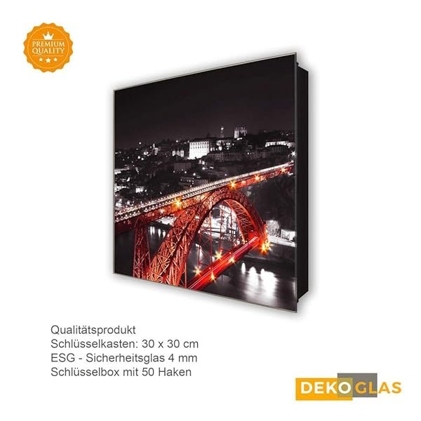 Glasbild-Welt Schlüsselkasten ‚Bogenbrücke Flair in 30×30 cm‘