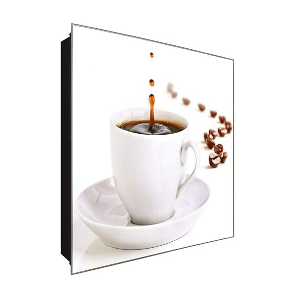 Schlüsselkasten 'Cup of Coffee ' 30×30 Glas, inkl. Haken Schlüsselbrett Schlüssel-Box Design Aufbewahrung