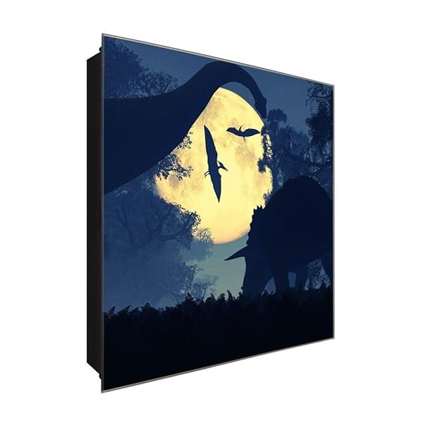 Glasbild-Welt Schlüsselkasten ‚Dinos im Mondschein in 30×30 cm‘