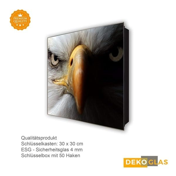 Schlüsselkasten 'Edler Adler ' 30×30 Glas, inkl. Haken Schlüsselbrett Schlüssel-Box Design Aufbewahrung