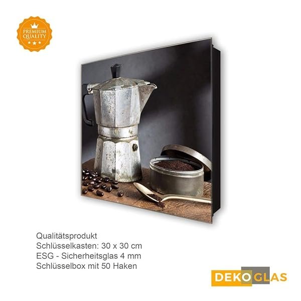 Schlüsselkasten 'Espressokanne ' 30×30 Glas, inkl. Haken Schlüsselbrett Schlüssel-Box Design Aufbewahrung