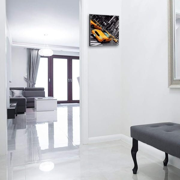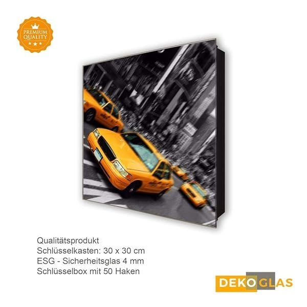 Glasbild-Welt Schlüsselkasten ‚Fahrendes Taxi in 30×30 cm‘