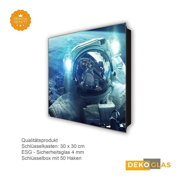 Glasbild-Welt Schlüsselkasten ‚Fliegender Astronaut in 30×30 cm‘