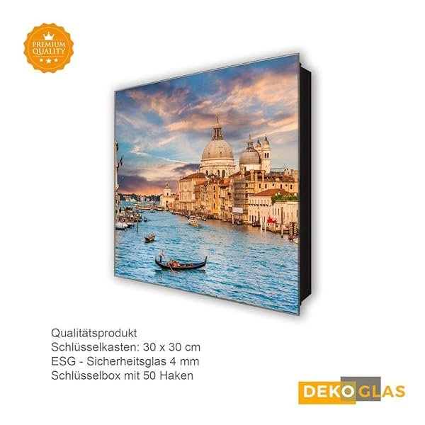 Mit diesem hochwertigen ca. 30 x 30 cm großen Schlüsselkasten dekorieren Sie gekonnt Ihren Eingangsbereich und sind nie wieder auf der Suche nach Ihren Schlüsseln. Der Schlüsselkasten von Glasbilder-Welt wird im Digitaldruck hergestellt, mit höchster Auflösung auf Folie gedruckt und anschließend auf Sicherheitsglas (ESG) geklebt. Durch das hoch entwickelte Produktionsverfahren, sowie die Verwendung neuester Nanotechnologie wird eine besondere 3D-Tiefenwirkung und Farbintensität erzielt.