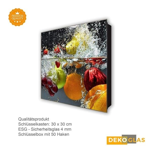 Schlüsselkasten 'Früchte Bad' 30×30 Glas, inkl. Haken Schlüsselbrett Schlüssel-Box Design Aufbewahrung