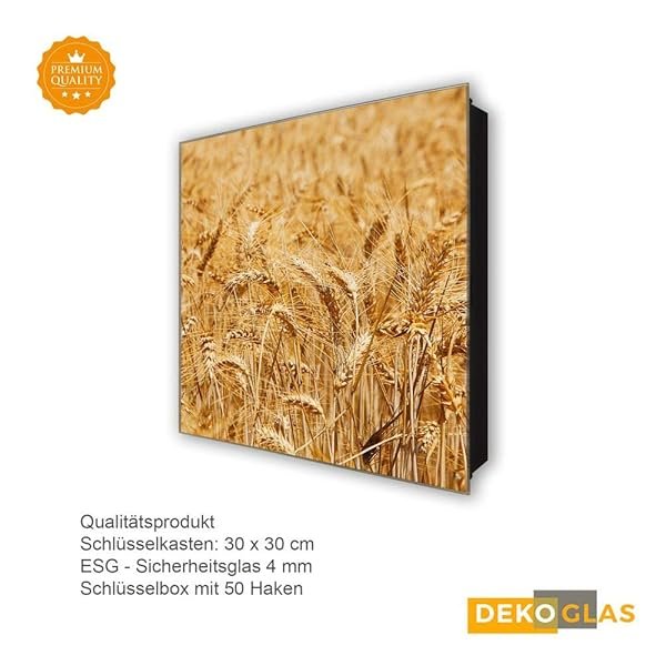 Schlüsselkasten 'Getreidefeld' 30×30 Glas, inkl. Haken Schlüsselbrett Schlüssel-Box Design Aufbewahrung