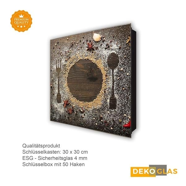 Schlüsselkasten 'Gewürz Abdruck ' 30×30 Glas, inkl. Haken Schlüsselbrett Schlüssel-Box Design Aufbewahrung