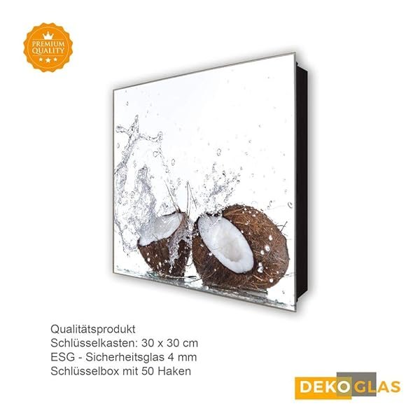 Schlüsselkasten 'Halbierte Kokosnuss' 30×30 Glas, inkl. Haken Schlüsselbrett Schlüssel-Box Design Aufbewahrung