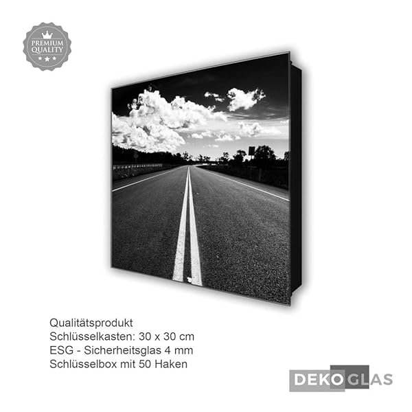 Schlüsselkasten 'Highway' 30×30 Glas, inkl. Haken Schlüsselbrett Schlüssel-Box Design Aufbewahrung