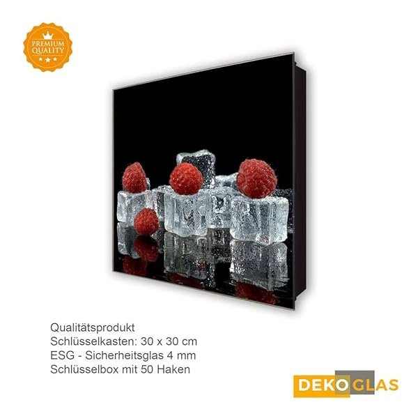 Glasbild-Welt Schlüsselkasten ‚Himbeere in 30×30 cm‘