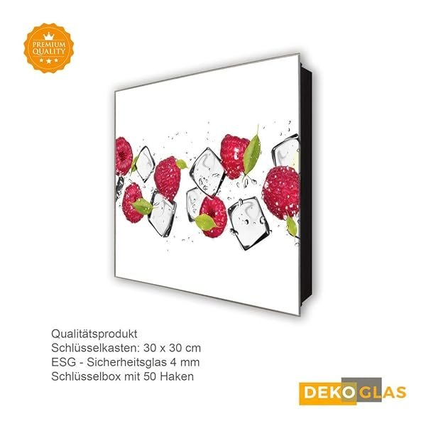 Glasbild-Welt Schlüsselkasten ‚Himbeeren in 30×30 cm‘