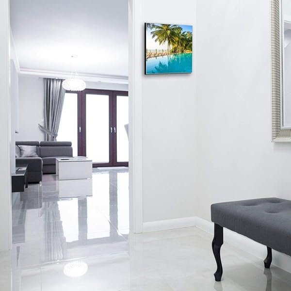 Glasbild-Welt Schlüsselkasten ‚Hotelanlage am Pool in 30×30 cm‘