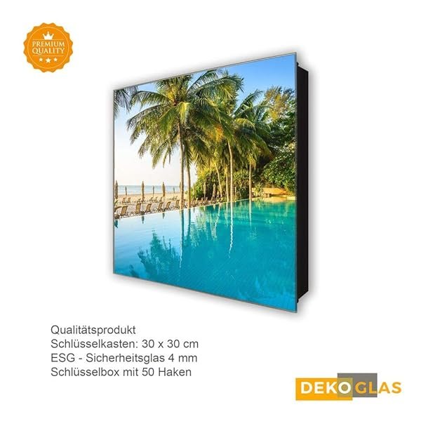 Schlüsselkasten 'Hotelanlage am Pool' 30×30 Glas, inkl. Haken Schlüsselbrett Schlüssel-Box Design Aufbewahrung