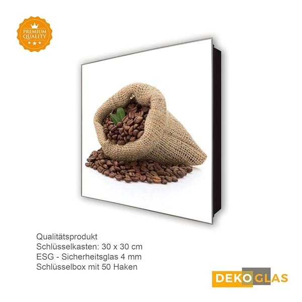 Schlüsselkasten 'Kaffeebohnen' 30×30 Glas, inkl. Haken Schlüsselbrett Schlüssel-Box Design Aufbewahrung