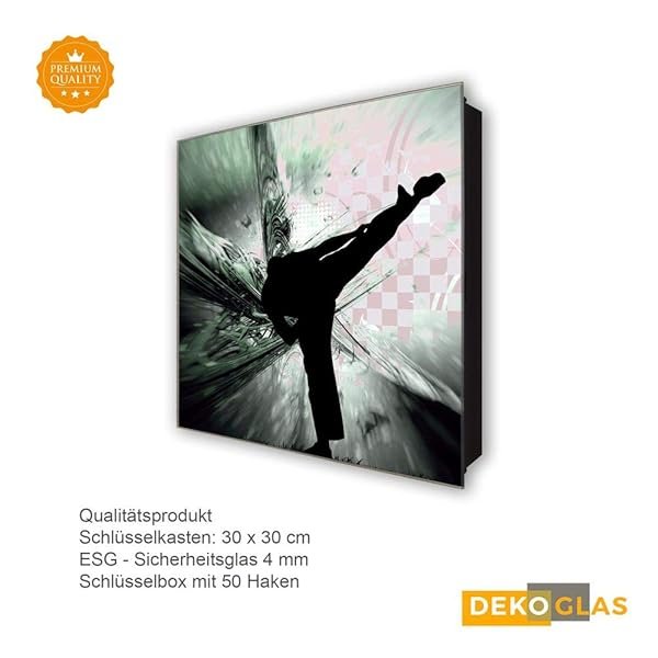 Glasbild-Welt Schlüsselkasten ‚Kampfkunst in 30×30 cm‘