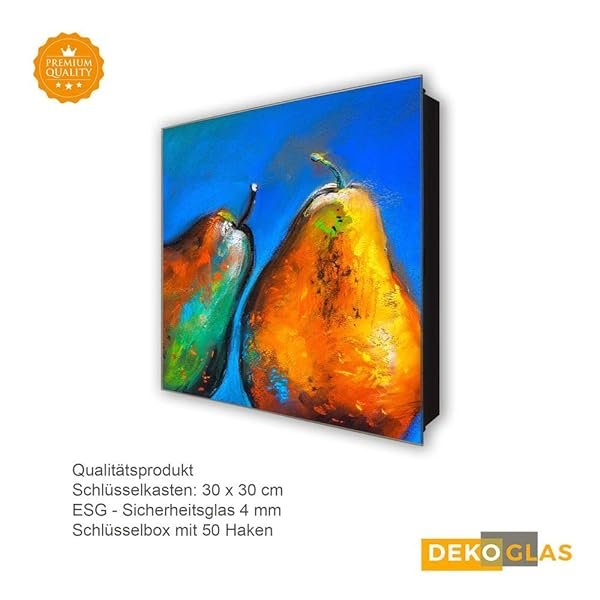 Glasbild-Welt Schlüsselkasten ‚Kunst Birnen in 30×30 cm‘
