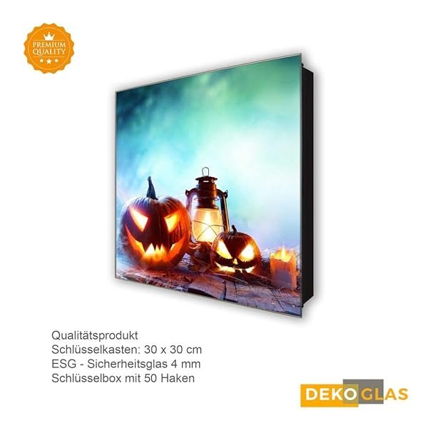 Schlüsselkasten 'Kürbisgesicht' 30×30 Glas, inkl. Haken Schlüsselbrett Schlüssel-Box Design Aufbewahrung