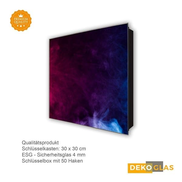 Schlüsselkasten 'Lila Blau Rauch' 30×30 Glas, inkl. Haken Schlüsselbrett Schlüssel-Box Design Aufbewahrung