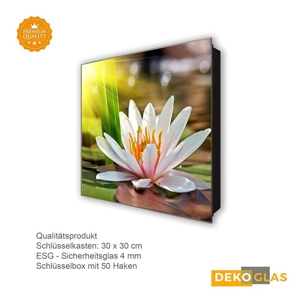 Schlüsselkasten 'Lilie im Wasser' 30×30 Glas, inkl. Haken Schlüsselbrett Schlüssel-Box Design Aufbewahrung