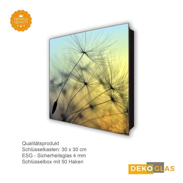 Schlüsselkasten 'Löwenzahnsamen ' 30×30 Glas, inkl. Haken Schlüsselbrett Schlüssel-Box Design Aufbewahrung
