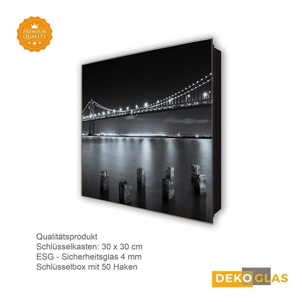 Schlüsselkasten 'Luminous Bay Bridge' 30×30 Glas, inkl. Haken Schlüsselbrett Schlüssel-Box Design Aufbewahrung