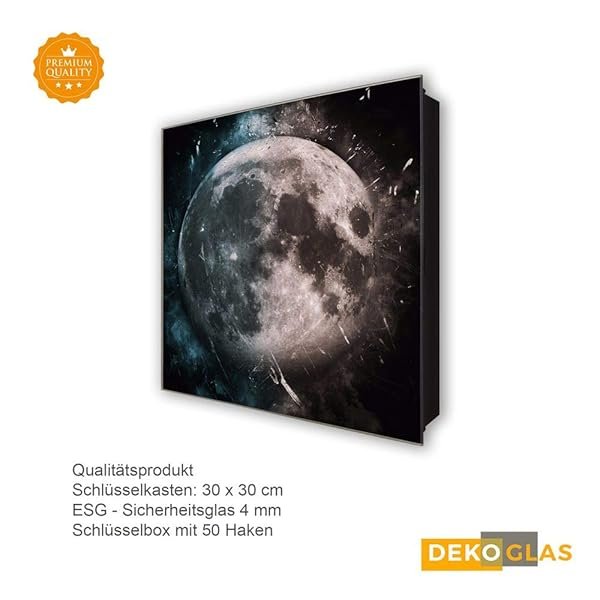 Glasbild-Welt Schlüsselkasten ‚Mond mit Flecken in 30×30 cm‘