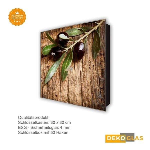 Glasbild-Welt Schlüsselkasten ‚Olivenzweigchen in 30×30 cm‘