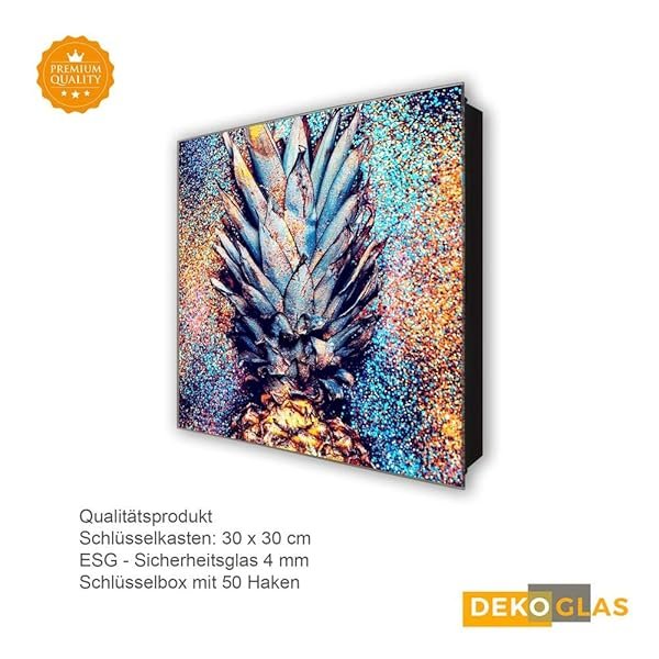 Schlüsselkasten 'Pixel Ananas' 30×30 Glas, inkl. Haken Schlüsselbrett Schlüssel-Box Design Aufbewahrung