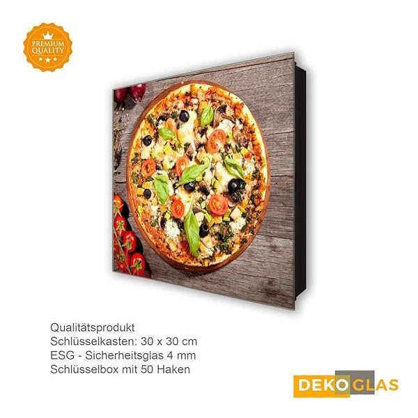 Glasbild-Welt Schlüsselkasten ‚Pizza fantastica in 30×30 cm‘