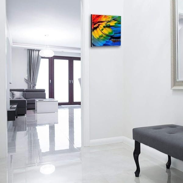 Glasbild-Welt Schlüsselkasten ‚Regenbogen Federn in 30×30 cm‘