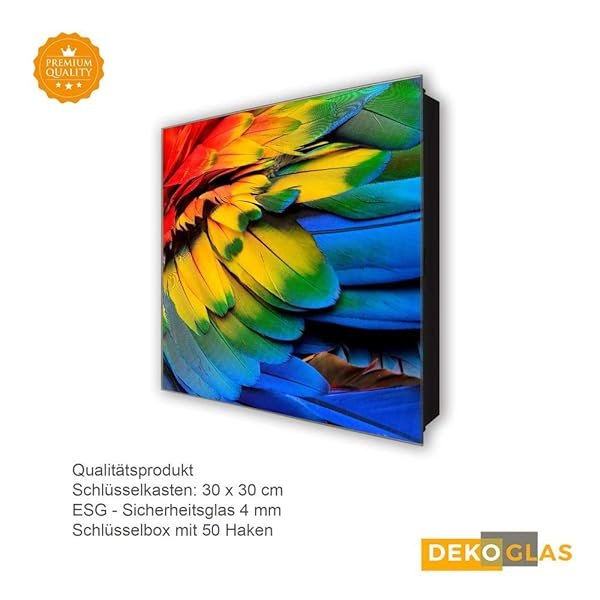 Mit diesem hochwertigen ca. 30 x 30 cm großen Schlüsselkasten dekorieren Sie gekonnt Ihren Eingangsbereich und sind nie wieder auf der Suche nach Ihren Schlüsseln. Der Schlüsselkasten von Glasbilder-Welt wird im Digitaldruck hergestellt, mit höchster Auflösung auf Folie gedruckt und anschließend auf Sicherheitsglas (ESG) geklebt. Durch das hoch entwickelte Produktionsverfahren, sowie die Verwendung neuester Nanotechnologie wird eine besondere 3D-Tiefenwirkung und Farbintensität erzielt.