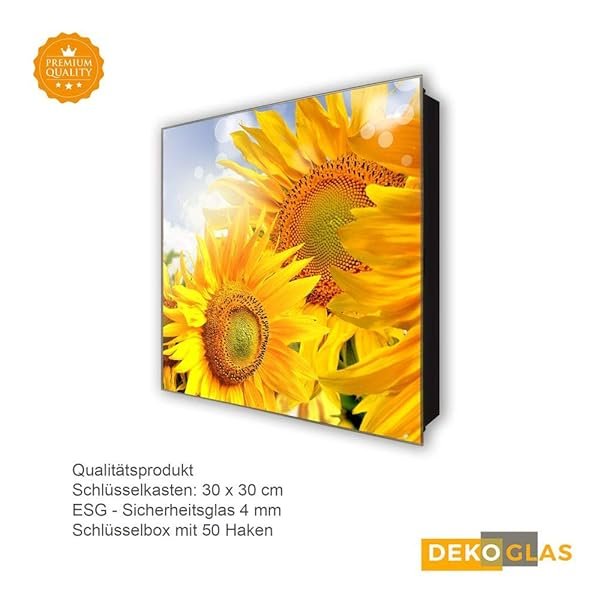 Glasbild-Welt Schlüsselkasten ‚Rießige Sonnenblumen in 30×30 cm‘