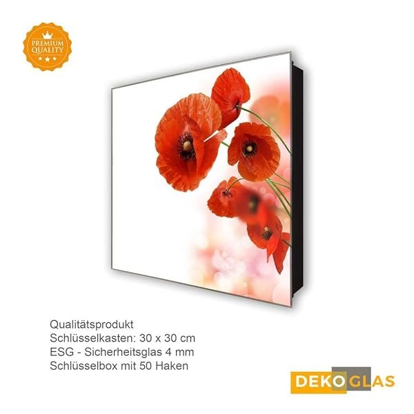 Glasbild-Welt Schlüsselkasten ‚Rote Blüten in 30×30 cm‘