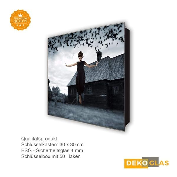 Schlüsselkasten 'Schwebende Hexe' 30×30 Glas, inkl. Haken Schlüsselbrett Schlüssel-Box Design Aufbewahrung