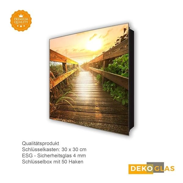 Glasbild-Welt Schlüsselkasten ‚Sonnen Steg in 30×30 cm‘