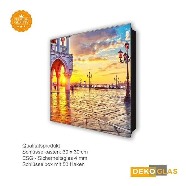 Mit diesem hochwertigen ca. 30 x 30 cm großen Schlüsselkasten dekorieren Sie gekonnt Ihren Eingangsbereich und sind nie wieder auf der Suche nach Ihren Schlüsseln. Der Schlüsselkasten von Glasbilder-Welt wird im Digitaldruck hergestellt, mit höchster Auflösung auf Folie gedruckt und anschließend auf Sicherheitsglas (ESG) geklebt. Durch das hoch entwickelte Produktionsverfahren, sowie die Verwendung neuester Nanotechnologie wird eine besondere 3D-Tiefenwirkung und Farbintensität erzielt.