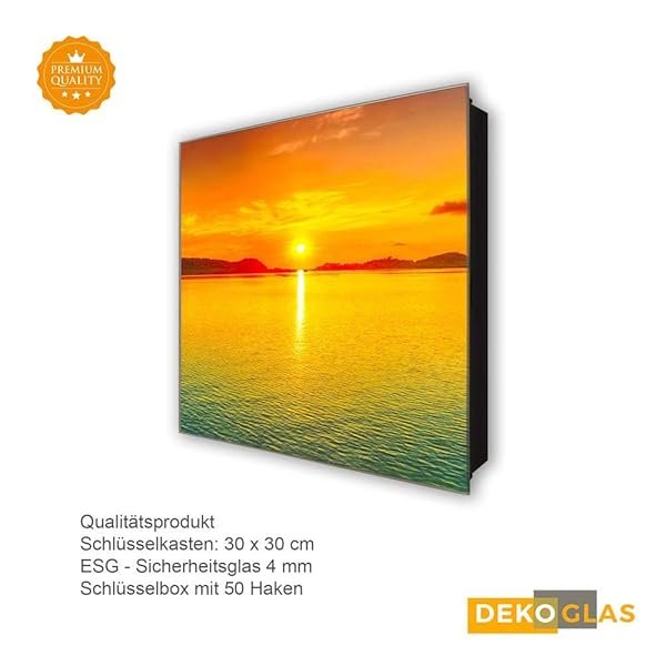 Mit diesem hochwertigen ca. 30 x 30 cm großen Schlüsselkasten dekorieren Sie gekonnt Ihren Eingangsbereich und sind nie wieder auf der Suche nach Ihren Schlüsseln. Der Schlüsselkasten von Glasbilder-Welt wird im Digitaldruck hergestellt, mit höchster Auflösung auf Folie gedruckt und anschließend auf Sicherheitsglas (ESG) geklebt. Durch das hoch entwickelte Produktionsverfahren, sowie die Verwendung neuester Nanotechnologie wird eine besondere 3D-Tiefenwirkung und Farbintensität erzielt.