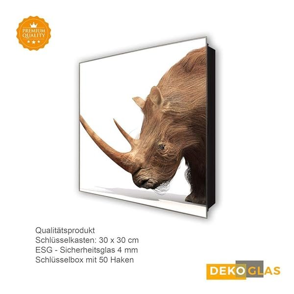 Schlüsselkasten 'Spitzmaulnashorn ' 30×30 Glas, inkl. Haken Schlüsselbrett Schlüssel-Box Design Aufbewahrung