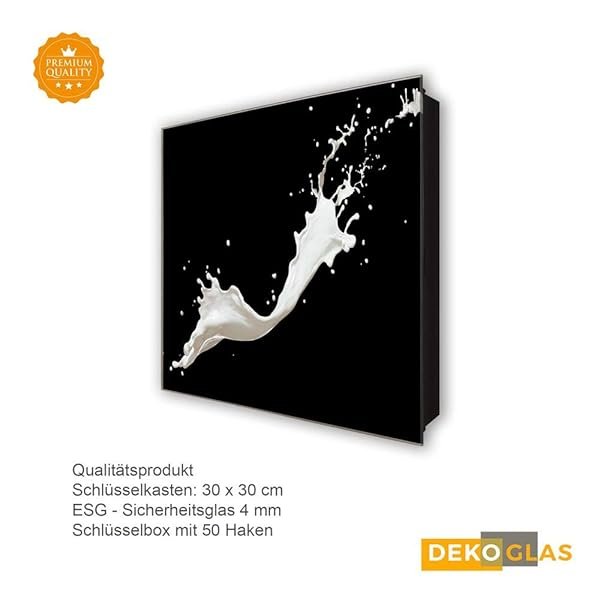 Schlüsselkasten 'Spritzige Milch' 30×30 Glas, inkl. Haken Schlüsselbrett Schlüssel-Box Design Aufbewahrung