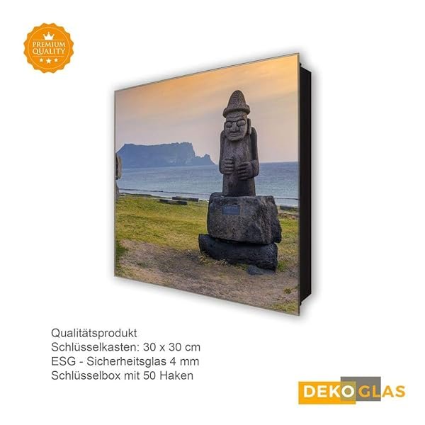 Schlüsselkasten 'Steinfigur am Wasser' 30×30 Glas, inkl. Haken Schlüsselbrett Schlüssel-Box Design Aufbewahrung