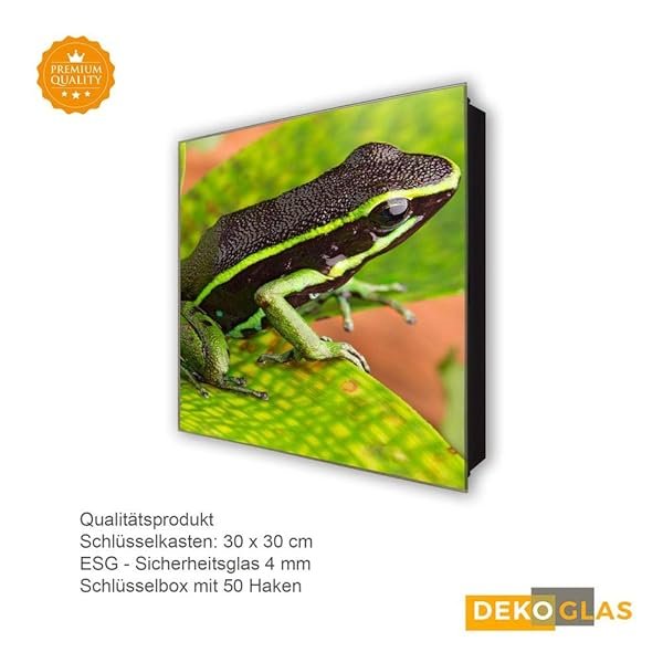 Glasbild-Welt Schlüsselkasten ‚Streifenfrosch in 30×30 cm‘
