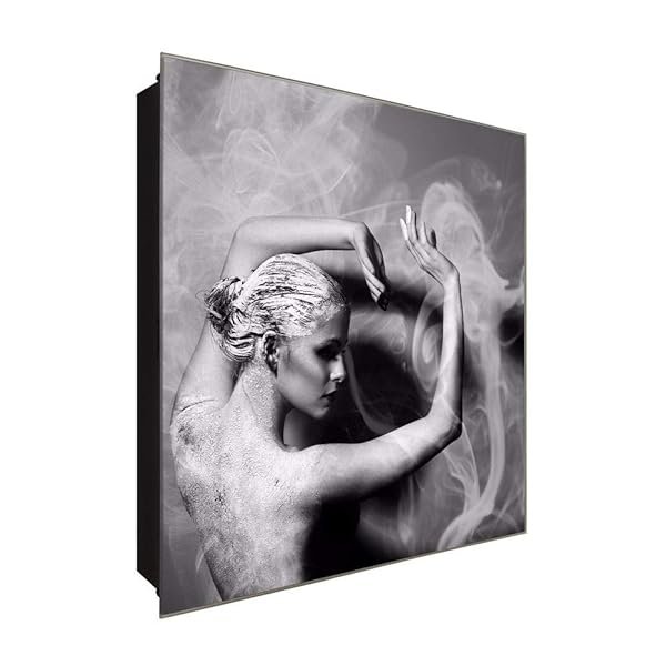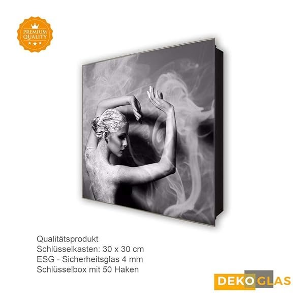 Schlüsselkasten 'Tanz im Rauch ' 30×30 Glas, inkl. Haken Schlüsselbrett Schlüssel-Box Design Aufbewahrung